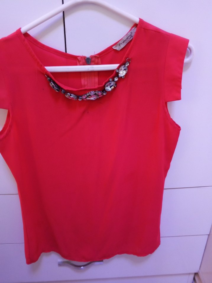 Renkli desenli, satenimsi kumaştan, düğmeli ve V yakalı kırmızı hamile bluzu. İnce askılı ve midi boyda, bohem tarzda şık bir seçim.