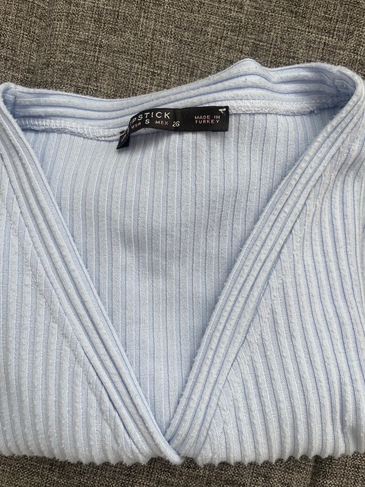 Bebe mavisi, v yaka ve uzun kollu kadın kazak, yumuşak triko kumaştan yapılmıştır. Rahat ve günlük kullanıma uygun bir tarza sahiptir.