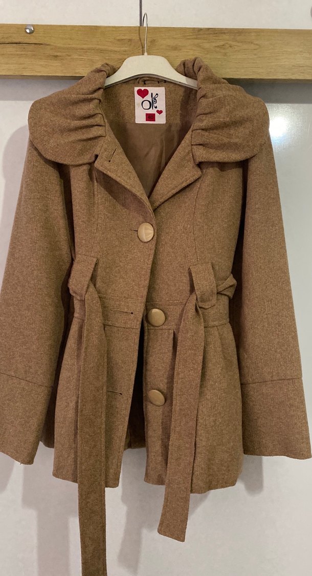 Düğmeli ve Kemerli Kahverengi Kaban