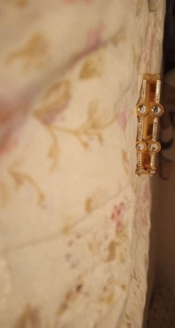 Düğmeli kapamalı, işlemeli desene sahip açık altın renkli kadın bilekliği, vintage ve bohem tarzını birleştirir, düğünler için uygun. ✨