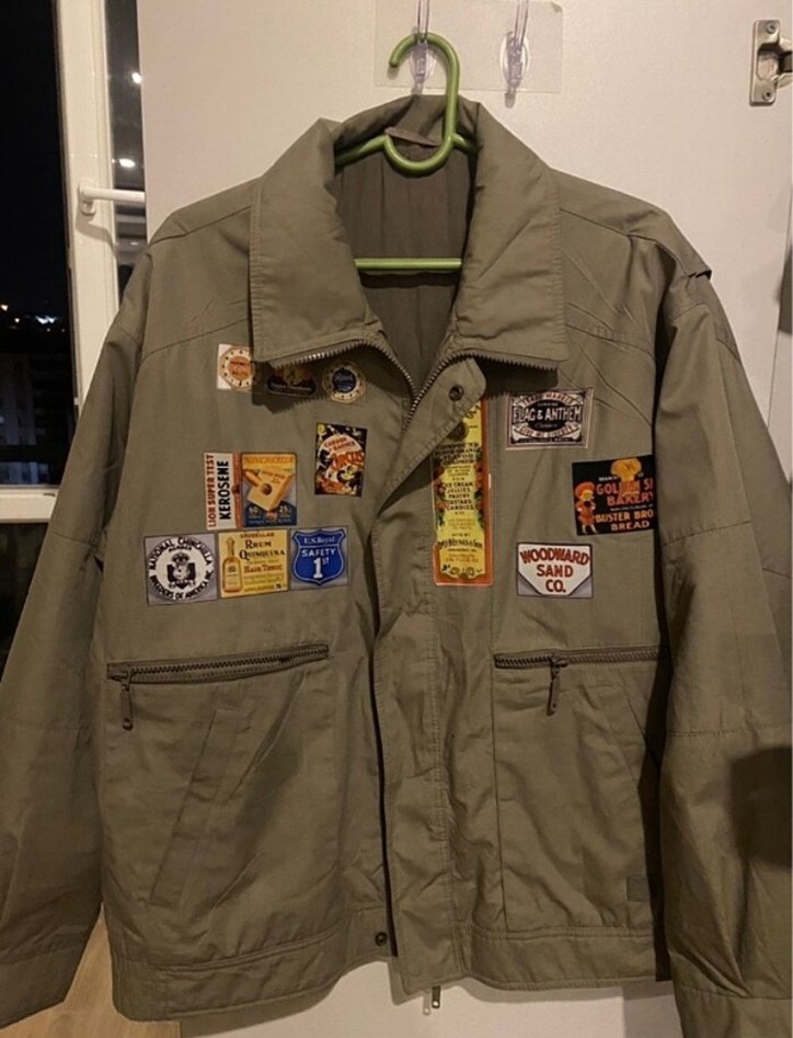 Düğmeli, uzun kollu, bol kesim ceket. Nakışlı vintage desenler, kahverengi sentetik kumaş ve normal midi uzunlukta. Günlük kullanıma uygun.