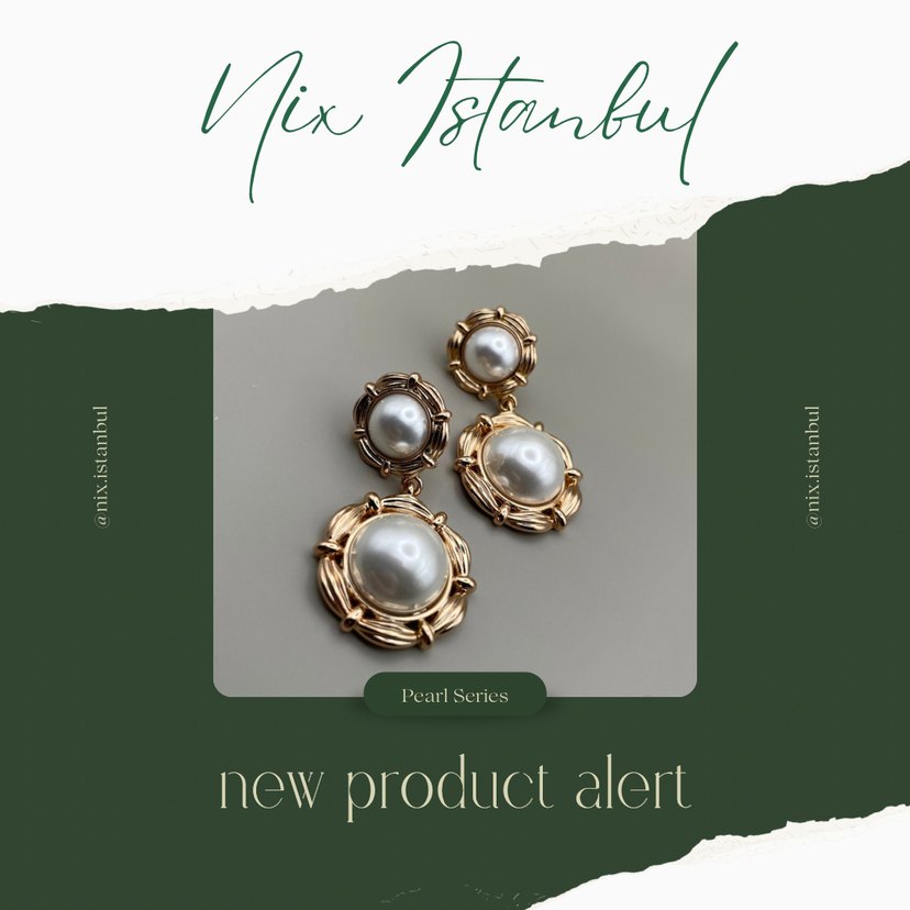 Kısa uzunlukta, düğmeli vintage küpeler, parlak beyaz nakışlı incilerle süslenmiş, düğünler ve klasik zarafet için uygun. Pearl Series koleksiyonundan.