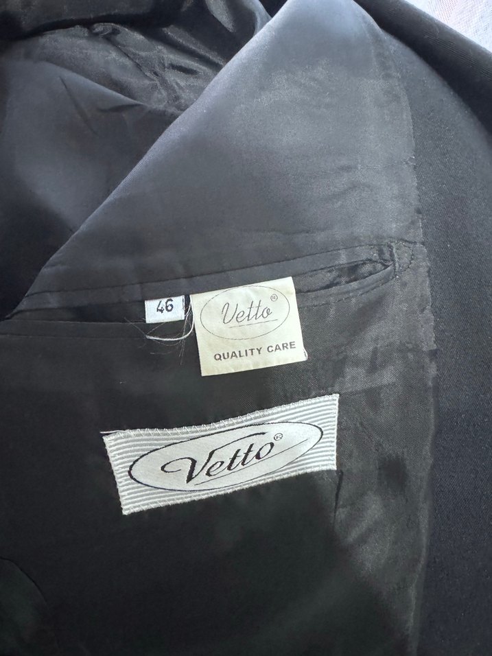 Vintage tarz siyah tuxedo ceket, düğmeli ve notched lapel yakalıdır. Uzun kollu, normal kesim ve baskılı desene sahiptir. Marka: Vetto. ️İhtiyaç fazlasıdır . Ürünün deformesi yırtığı yoktur,alıcısına hayırlı olsun.