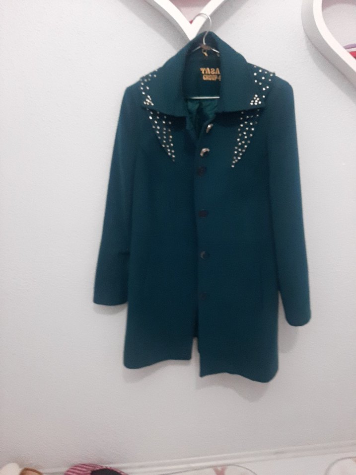 Düğmeli, uzun kollu, notalı yaka detaylı turkuaz kadın kaban. Nakış işlemeleriyle bohem vintage tarzı sunar. Yumuşak ve sıcak kumaştan, günlük kullanım için uygun.