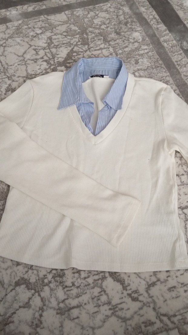 Düğmeli Yaka Detaylı Beyaz Kadın Gömlek