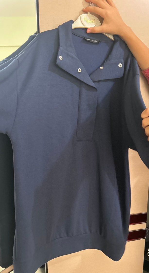 Düğmeli Yaka Detaylı Mavi Hamile Gömleği