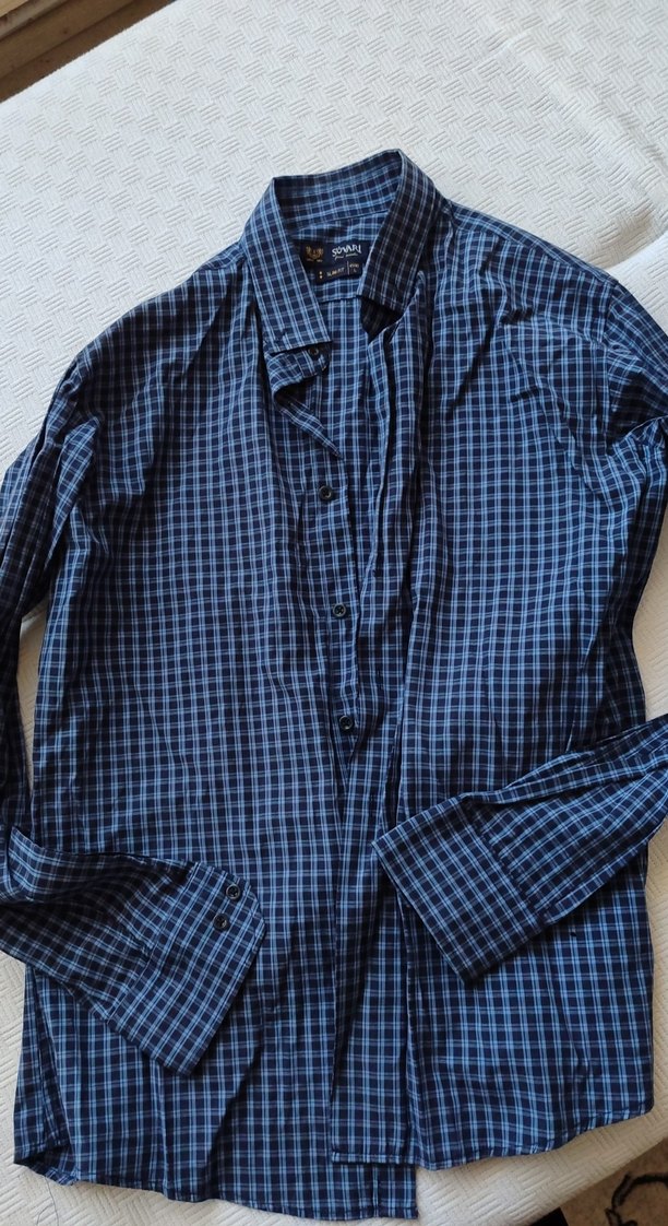 Düğmeli yaka kareli Lacivert Erkek Gömlek