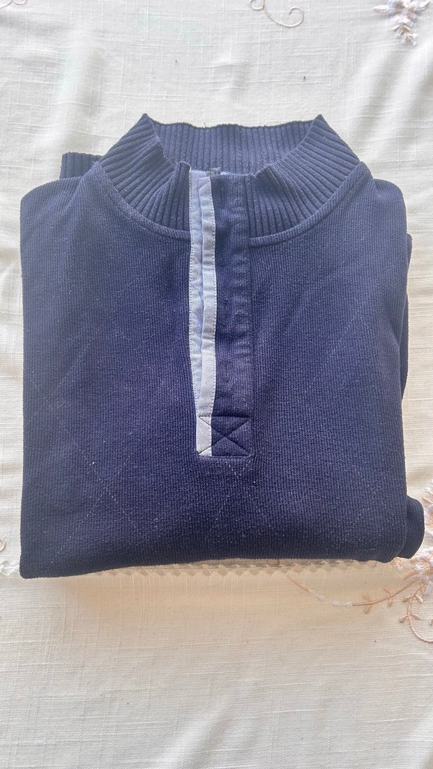 Düğmeli yarım balıkçı yaka ve uzun kollu örme kumaştan yapılmış, bol kesim gri renk erkek kazak. Günlük ve normcore tarz için uygundur.