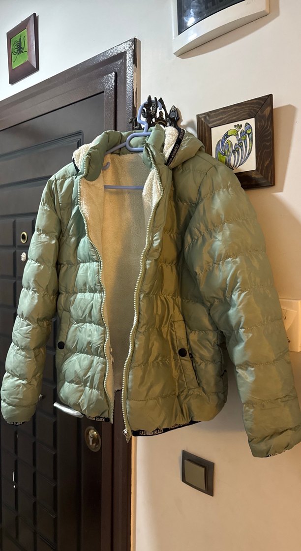 yaş yazmıyor ama 9-11 yaş diye düşünüyorum Düğmeli, uzun kollu ve yeşil renkli, fitted kesim kadın kışlık mont. Notched lapel yaka ve yumuşak, sıcak astar içerir. Rahat ve şık sokak stili için uygundur. ❄️