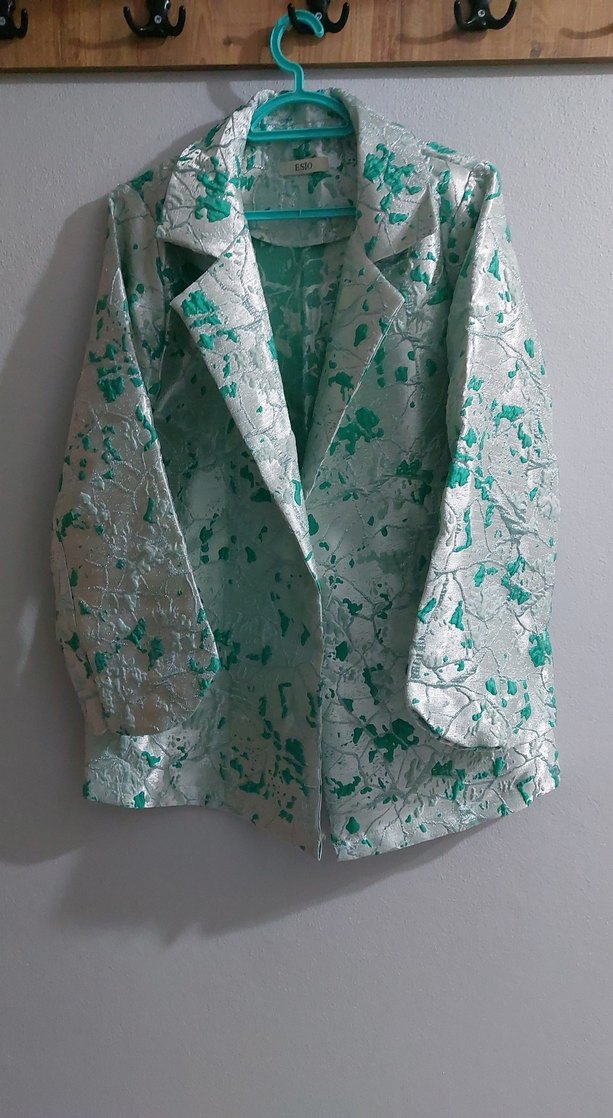 Düğmeli, yakalı, yeşil ve gri desenli, normal boy ceket, rahat kesim rahatlıkla her bedene olur