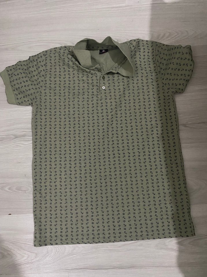 Düğmeli yakalı, kısa kollu yeşil polo tişört. Desenli ve yumuşak sentetik kumaştan, bol kesimdir. Günlük rahat sokak stiline uygundur.