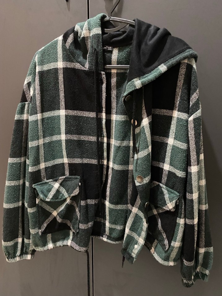 Yumuşak ve sıcak kumaştan, düğmeli, cep detaylı, uzun kollu, notched lapel yaka yeşil ekose kadın gömlek. Rahat kesim, gündelik kullanıma uygun.