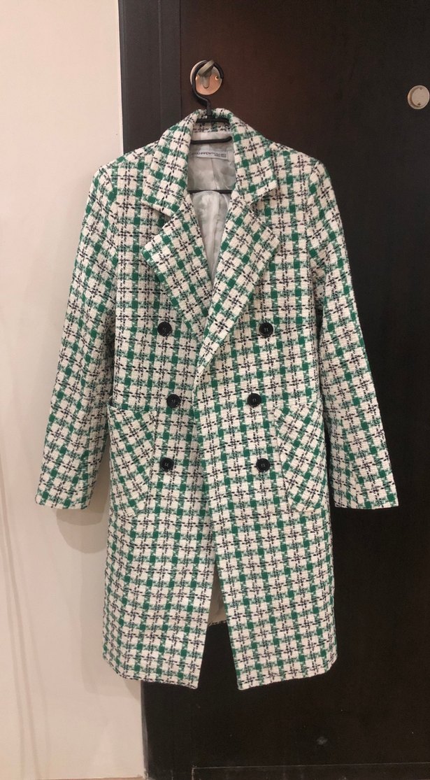 Düğmeli Yeşil Ekose Midi Kadın Kaban