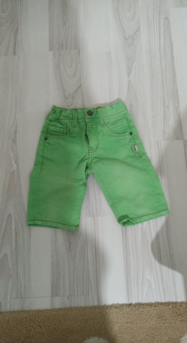 Düğmeli, bol kesim yeşil denim erkek çocuk şortu. Renkli ve desen içermeyen sokak modası tarzında. 2yas kanz markadır