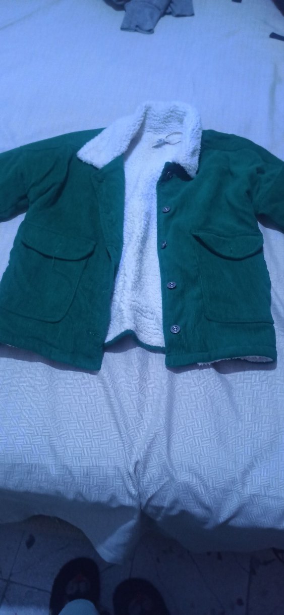 Koyu yeşil renk, düğmeli, cep detaylı, yumuşak ve sıcak kumaşlı erkek çocuk kabanı. Notlu yaka ve bol kesim, sokak stiline uygun. Etiket üzerinde 11-12 yaş yazmakta ama daha çok 8-9-10 yaş için uygun görünüyor içi Polarli