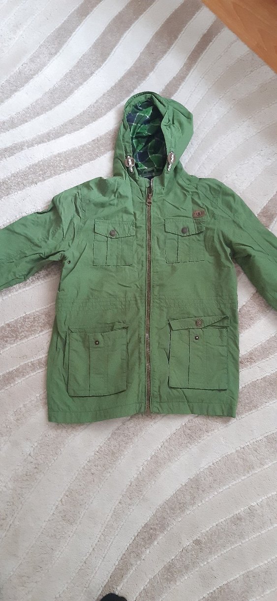 Parlak yeşil renkte düğmeli erkek çocuk montudur. Yaka tipi notched lapel, cep detayları düğmelidir. Rahat kesim ve yumuşak, sıcak kumaştan üretilmiştir.