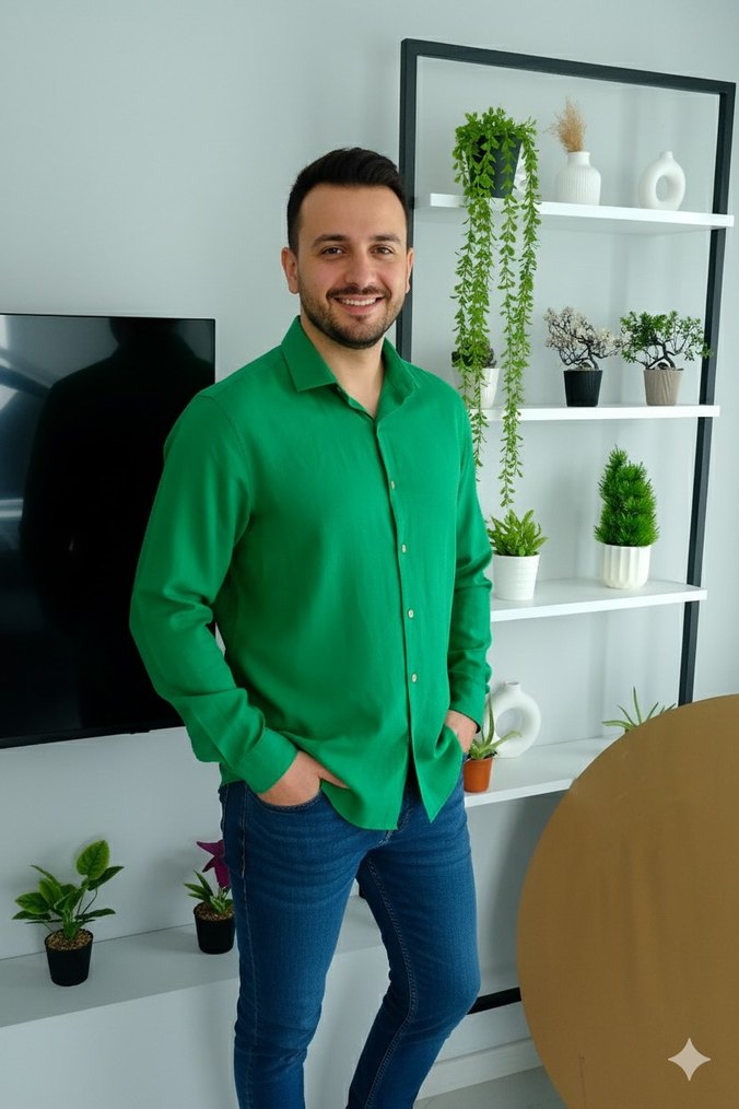 Düğmeli Yeşil Erkek Gömlek