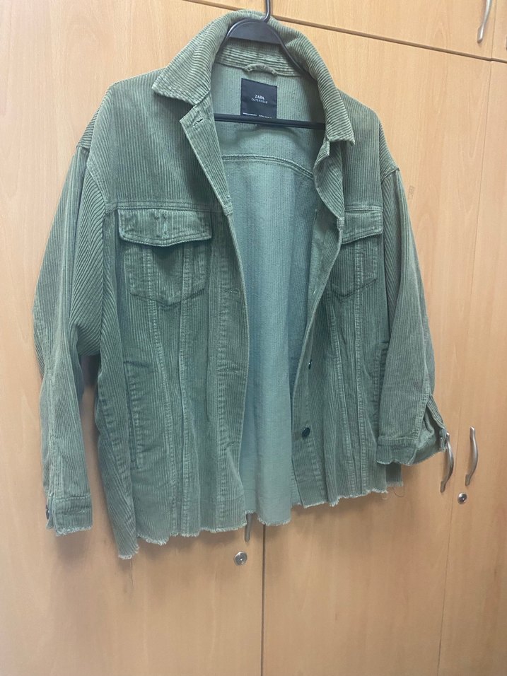 Düğmeli Yeşil Kadife Kadın Ceket