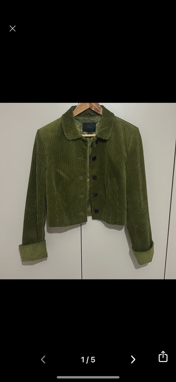 Yeşil kadife kumaştan, düğmeli, yakalı ve uzun kollu kısa ceket. Ofis için uygun, rahat ve şık. Defosu yoktur .
