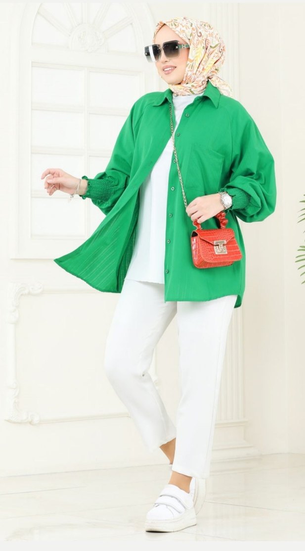 Düğmeli Yeşil Kadın Gömlek