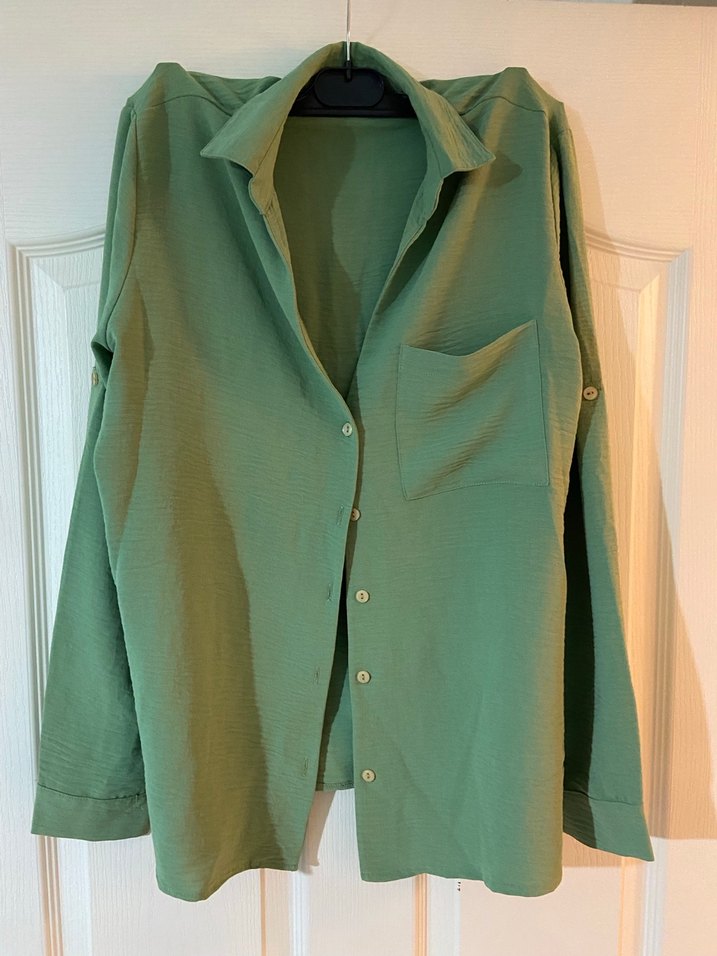 Düğmeli Yeşil Kadın Gömlek