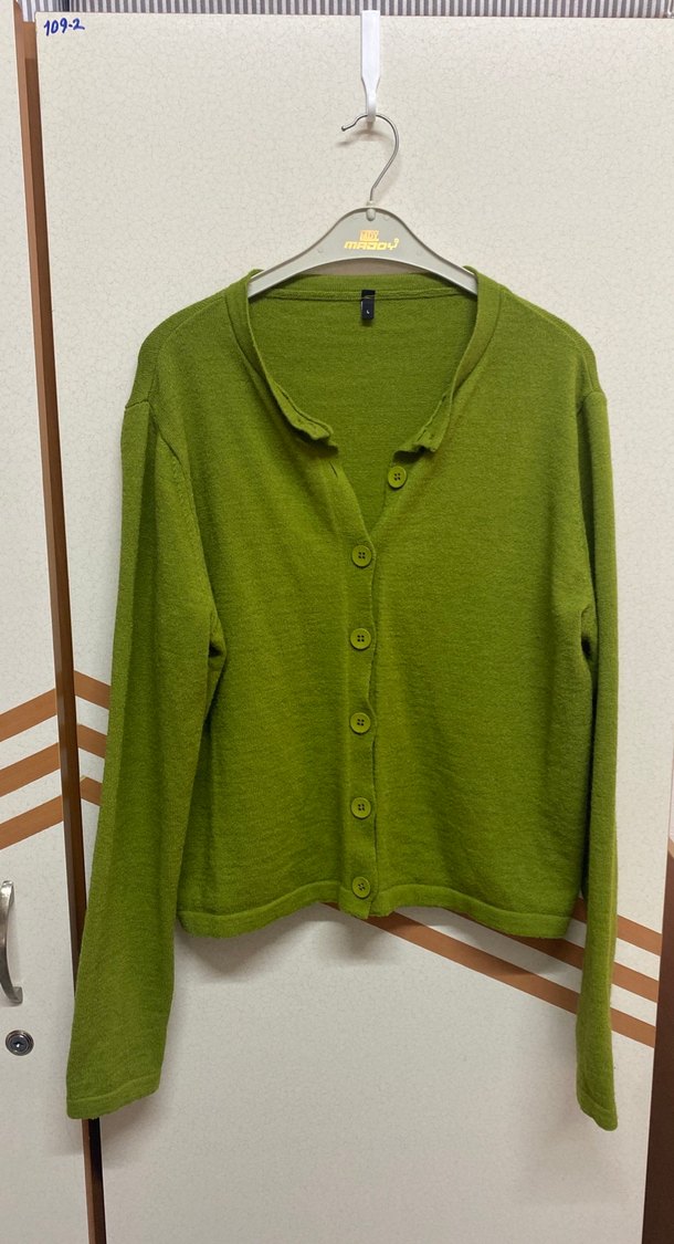Düğmeli, uzun kollu, yuvarlak yakalı yeşil triko hırka. Rahat kesimi ve normal boyu ile günlük kullanıma uygundur.