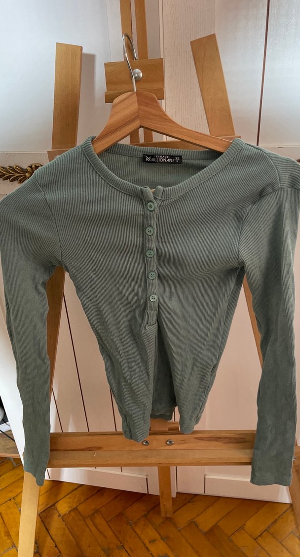 Düğmeli ön kısmı, bisiklet yaka ve uzun kollu ince triko, yumuşak keten kumaştan, günlük kullanıma uygun normal uzunluktadır.
