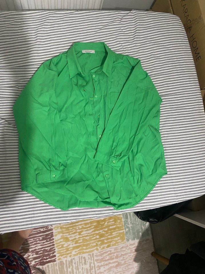 Nefes alabilen keten kumaştan, düğmeli, yakalı ve uzun kollu, m / l bedene uygun oversize