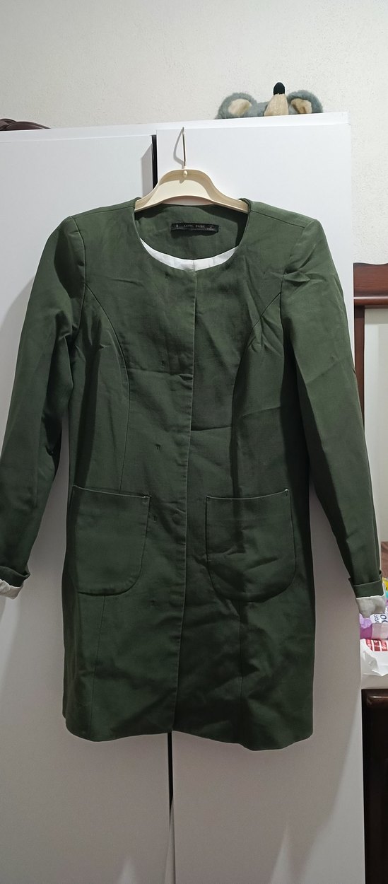 Düğmeli, yeşil renkte, normal kesim kadın midi kaban. Uzun kollu ve yakası notched lapel, önünde iki cep bulunur. Sentetik kumaştan, günlük kullanıma uygun.