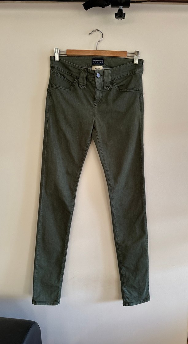 Düğmeli, normal boy, regular kesim yeşil kadın skinny denim pantolon, günlük rahat kullanıma uygundur.