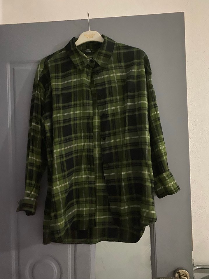 Düğmeli, yakalı ve uzun kollu bu koyu yeşil gömlek bol kesim ve normal midi boydadır. Grunge punk tarzında, günlük sokak giyimine uygundur.