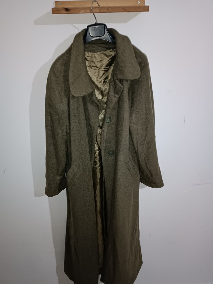 Düğmeli yeşil kaşe kaban 125 cm uzun 38 46 bedene kadar uyumlu