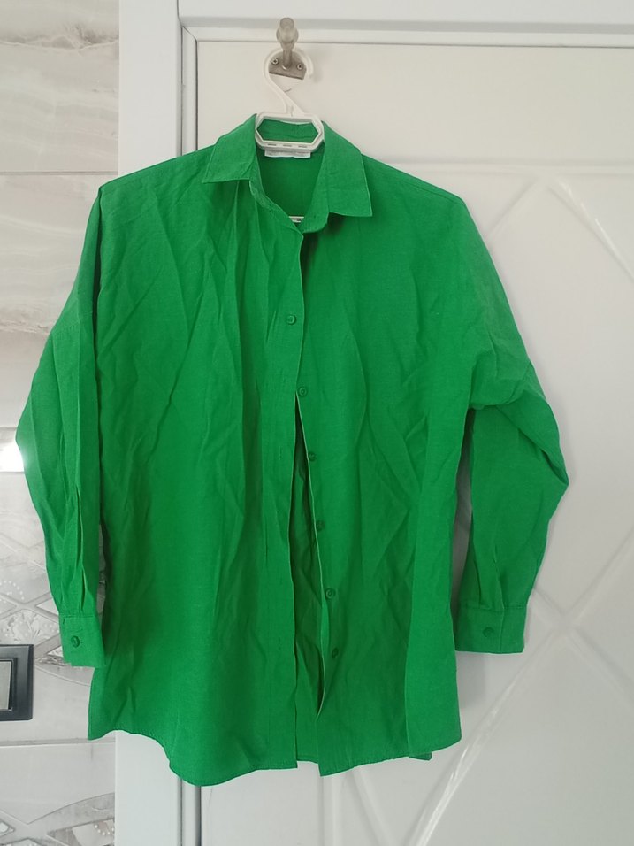 Düğmeli Yeşil Keten Kadın Gömlek
