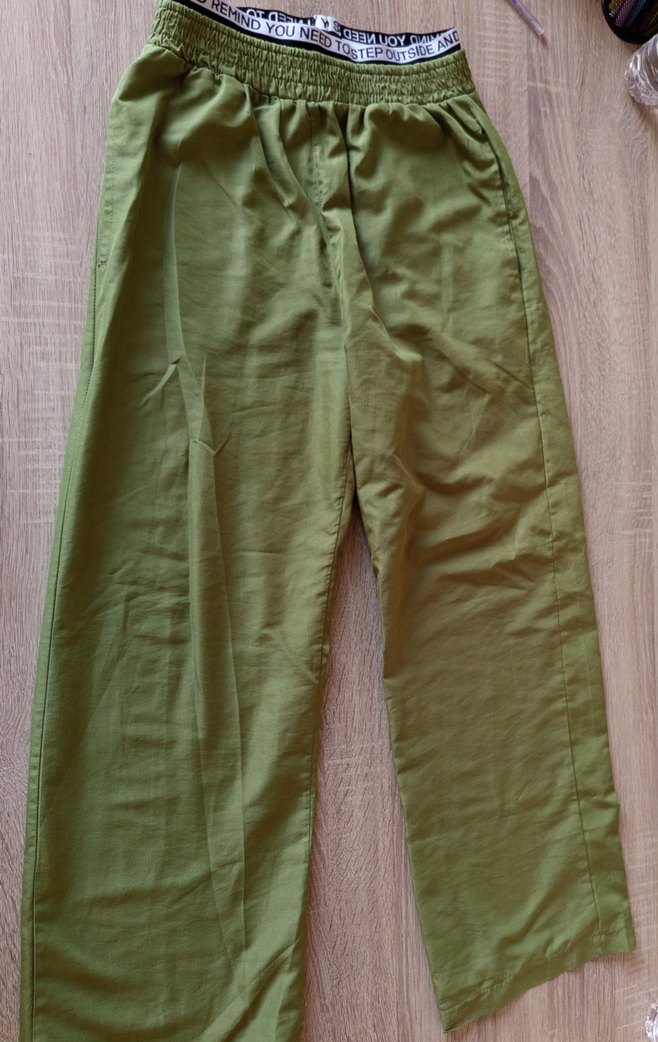 midi boy, rahat kesim yeşil keten pantolon, günlük kullanıma uygun rahat. M beden paçası uzun olduğundan zedelendi. terzi ile hallolur.