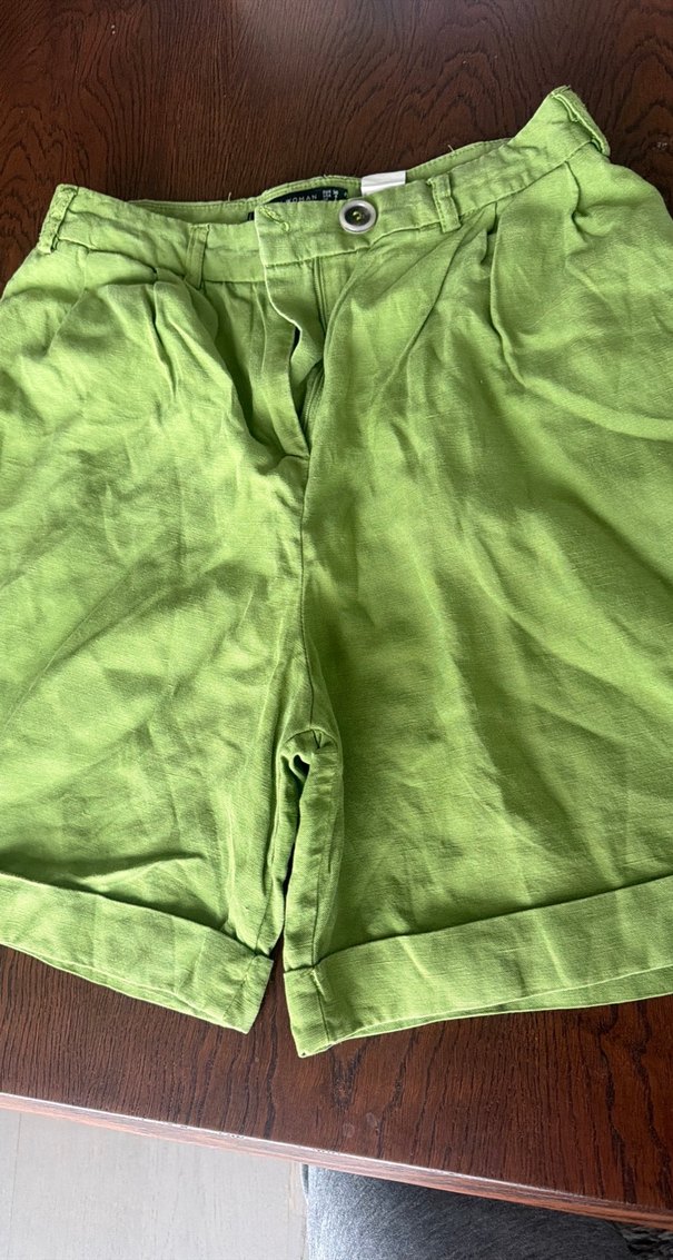 Düğmeli Yeşil Keten Şort