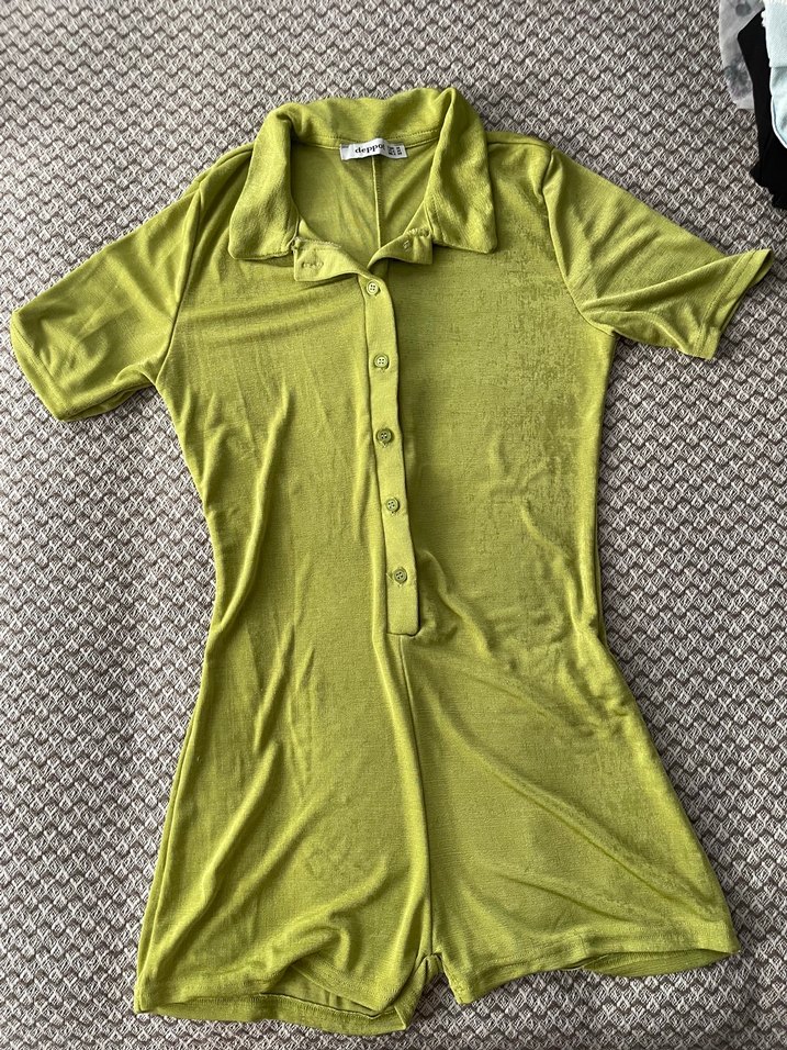 Düğmeli Yeşil Kısa Kollu Kadın Tulum
