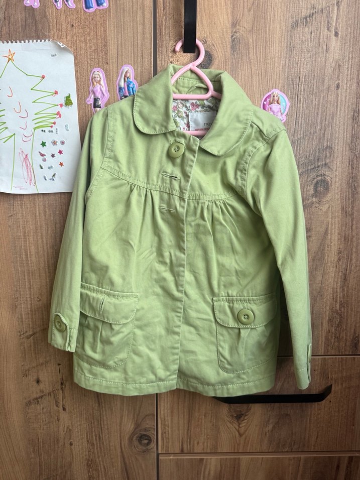 Pamuklu, pastel yeşil renkli, düğmeli ve kesik yaka detaylı bol kesim kız çocuk ceketi. Çok tatlı bir rengi var baharlık ütüleince yepyeni olur sayılı kullanıldı