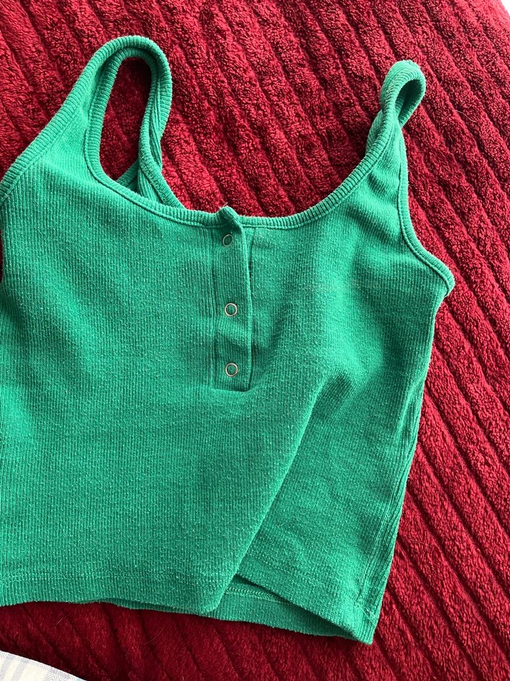 Düğmeli Yeşil Örme Askılı Crop Top