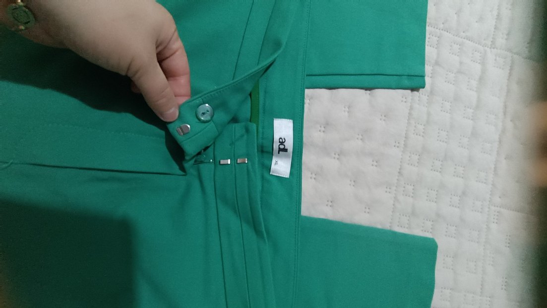 Düğmeli, yeşil pantolonu. Sentetik kumaştan, normal kesim Ofis için uygun,