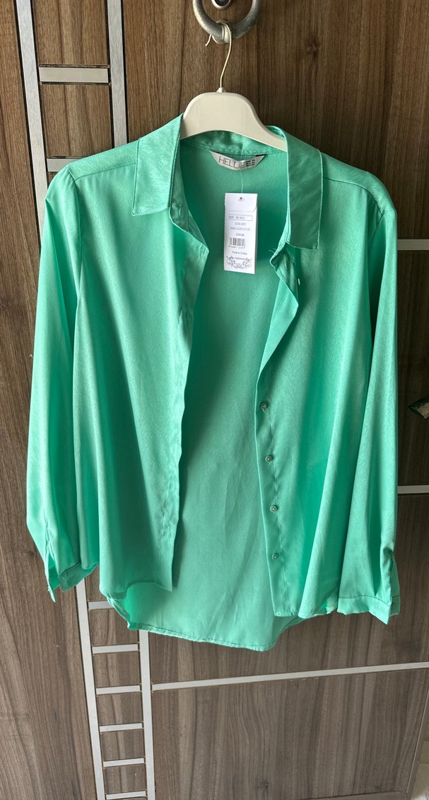 Düğmeli Yeşil Saten Kadın Gömlek