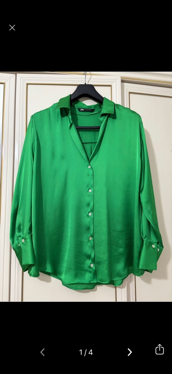 Düğmeli Yeşil Saten Kadın Gömlek Zara