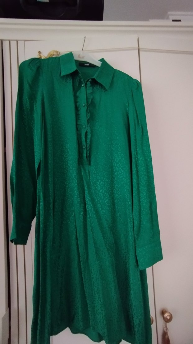 Düğmeli, yakalı ve uzun kollu tunik şık ve parlak, ipeksi dokusuyla vintage bohem tarzını yansıtır.