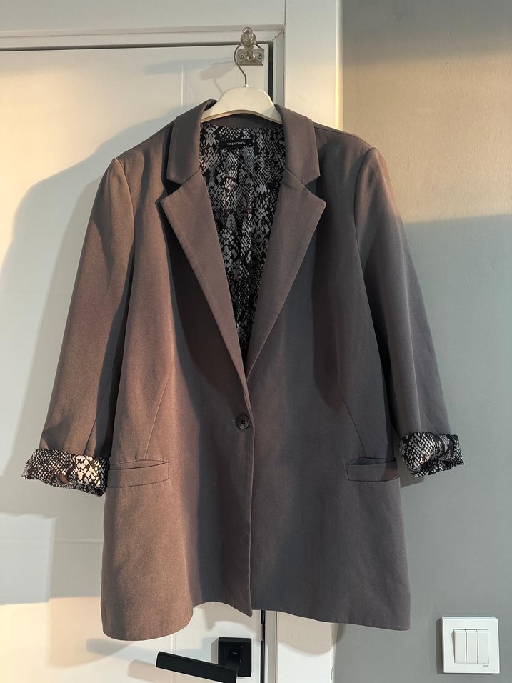 Düğmeli Yılan Desenli Antrasit Blazer