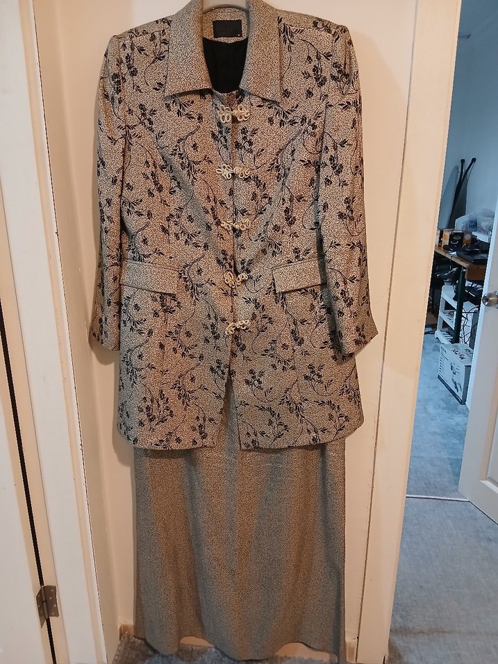 Bu kadın takım elbisesi, uzun ve regular fit kesime sahip olup, düğmeli ön kısmı ve yaka detayıyla dikkat çeker. Sentetik kumaştan üretilmiş, bej yılan desenli ve uzun kolludur. Ofis için klasik ve vintage bir tarz sunar.
