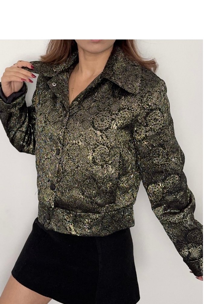 Düğmeli Yılan Desenli Kısa Kadın Ceket