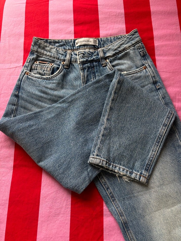 Stradivarius markalı, düğmeli ön kısımlı, normal boy ve regular fit kadın denim jean. Günlük kullanıma uygun rahat bir model.