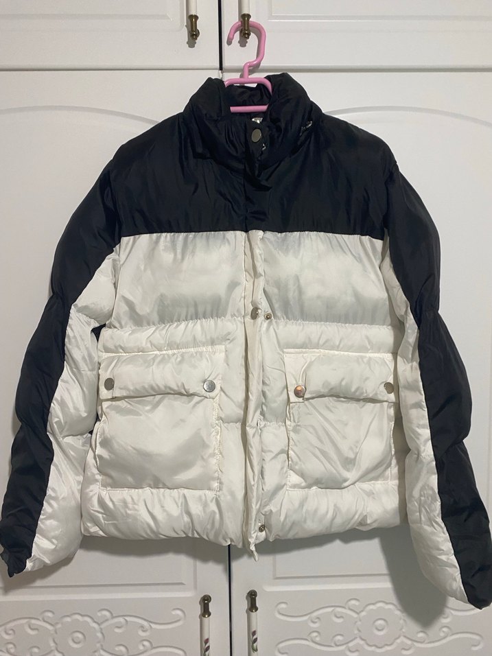 Düğmeli, yüksek yakalı kadın kışlık mont. Uzun kollu ve normal boyda, siyah ve beyaz renklerle sokak stilinde tasarlanmıştır. Yumuşak ve sıcak fleece kumaştan yapılmıştır. ❄️