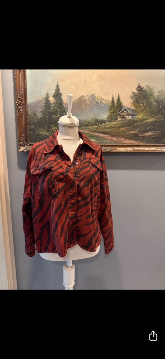 Bu bol kesim kadın gömlek, uzun kollu ve yakalıdır. Koyu kahverengi zebra desenli, düğmeli ve bohem tarzda, günlük kullanım için uygundur.