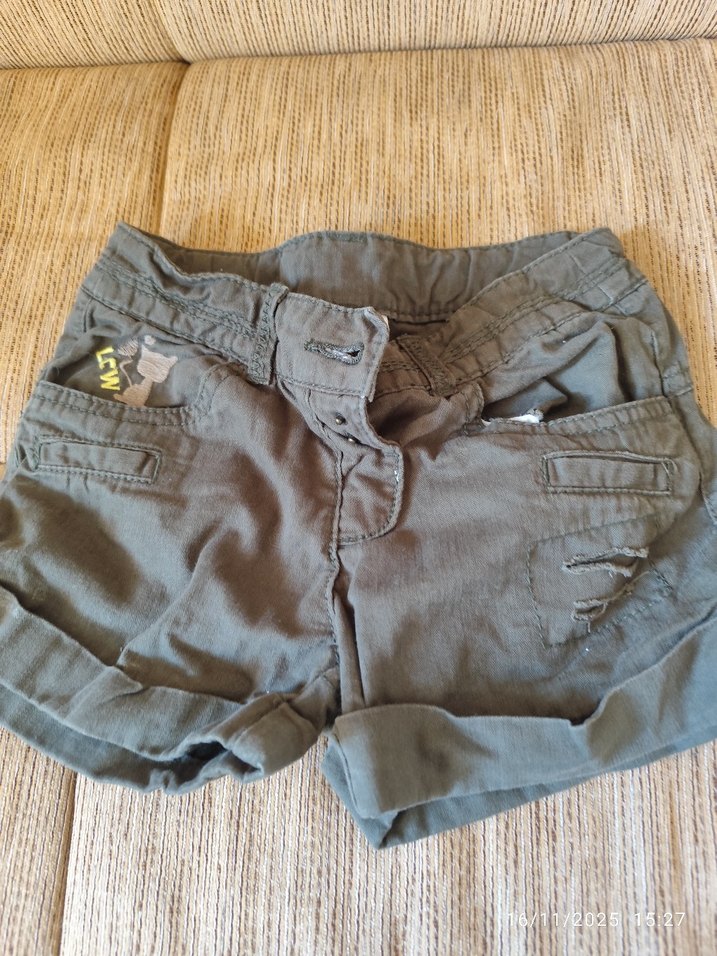 Düğmeli, bol kesim asker yesili keten hamile şortu, kısa boy ve rahat tarzda. Açık hava kullanımı için uygundur. kız çocuk icin