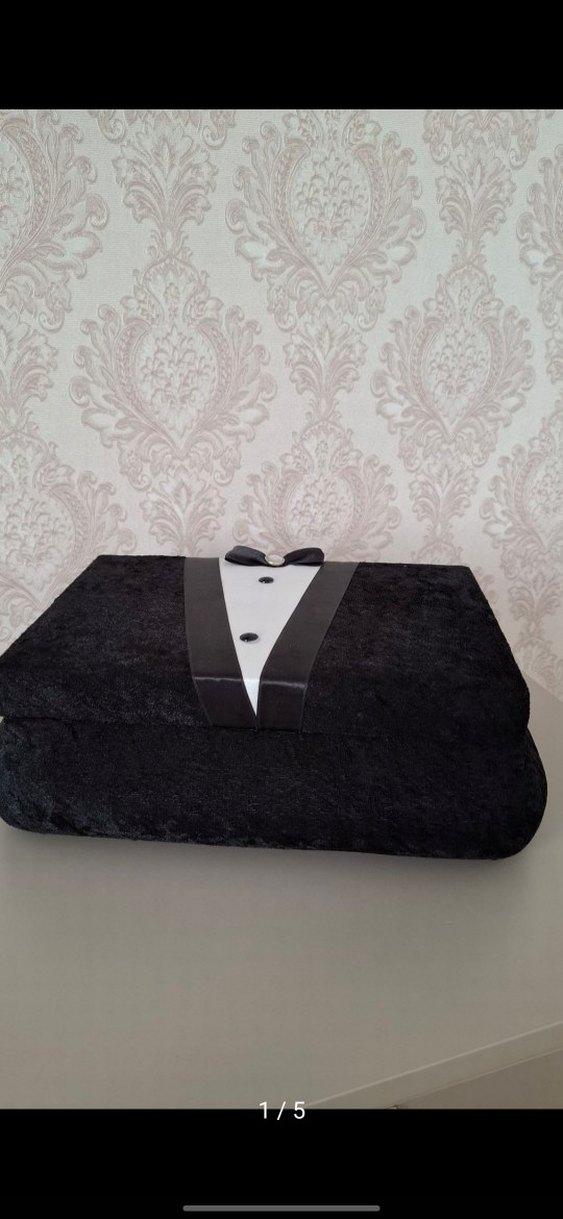Klasik siyah renkli, baskılı desenli ve tokalı detaylara sahip hiç kullanılmadı